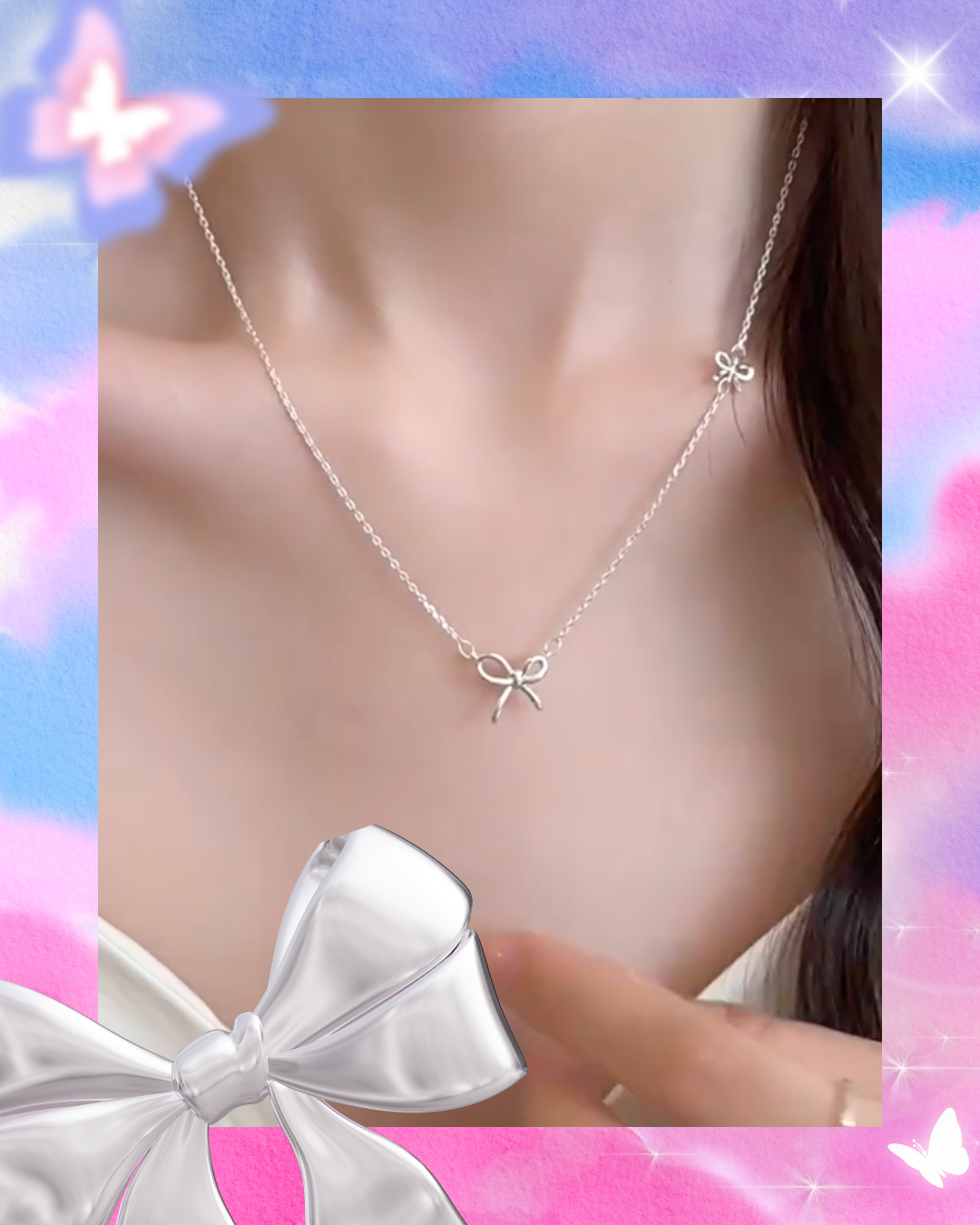 Tiny Bow Silver Necklace ππ A delicate little ribbon that lands on your collarbone ππ